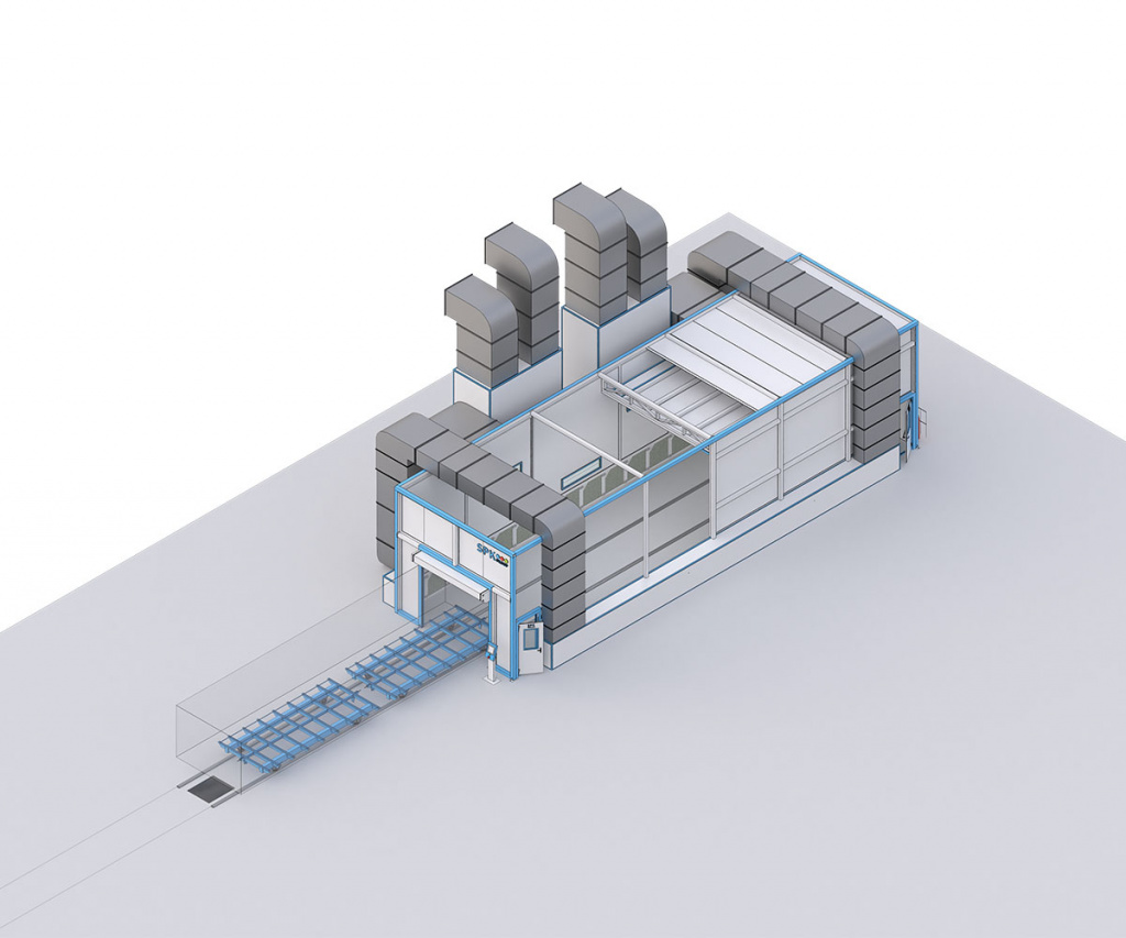 Окрасочно-сушильная камера тупикового типа SPK-SCB-18.5.4 (далее — ОСК) предназначена для подготовки изделий к покраске, нанесения на них лакокрасочных покрытий и их сушки при повышенной температуре. В камере обеспечивается равномерный поток очищенного, подогретого воздуха. Направление потока воздуха — сверху вниз камеры. Камера имеет сухой способ фильтрации воздуха от остатков краски. Это обеспечивает наилучшее нанесение лакокрасочного материала на подготовленное изделие и не требует реализации дополнительных очистных сооружений.